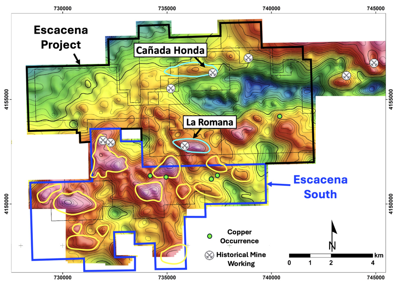 The Escacena and Escacena South Project comprises a large, contiguous mineral rights land package controlled 100% by Pan Global in the east of the Iberian Pyrite Belt. The area has been expanded from 5,760-hectares to more than 10,000-hectares with the award of the Flores, Rosario and Girasoles mineral rights in September 2025. Pan Global has also submitted four additional Investigation Permit applications covering 3,888-hectares (Inmaculada, Santa Isabel, Santa Micaela I and Santa Micaela II) that will further increase the mineral rights holdings in the Iberian Pyrite Belt to more than 13,900-hectares. Escacena is located near the operating mine at Riotinto and is immediately adjacent to the former Aznalcóllar and Los Frailes mines where Minera Los Frailes (Grupo México) is commencing a new underground mine development beneath the former Los Frailes open-pit mine. The Escacena Project hosts Pan Global’s La Romana copper-tin-silver deposit, the Cañada Honda copper-gold discovery, and a number of other prospective targets.