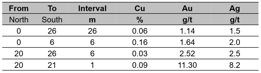 Table 1 – Cañada Honda Channel Sample assay results summary